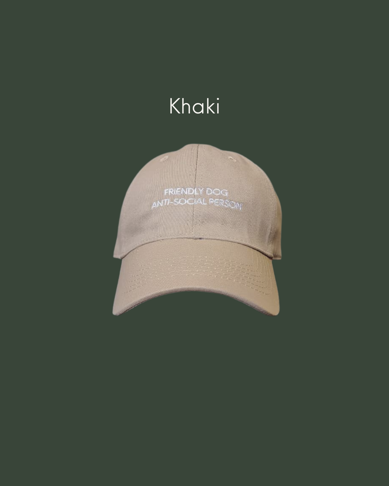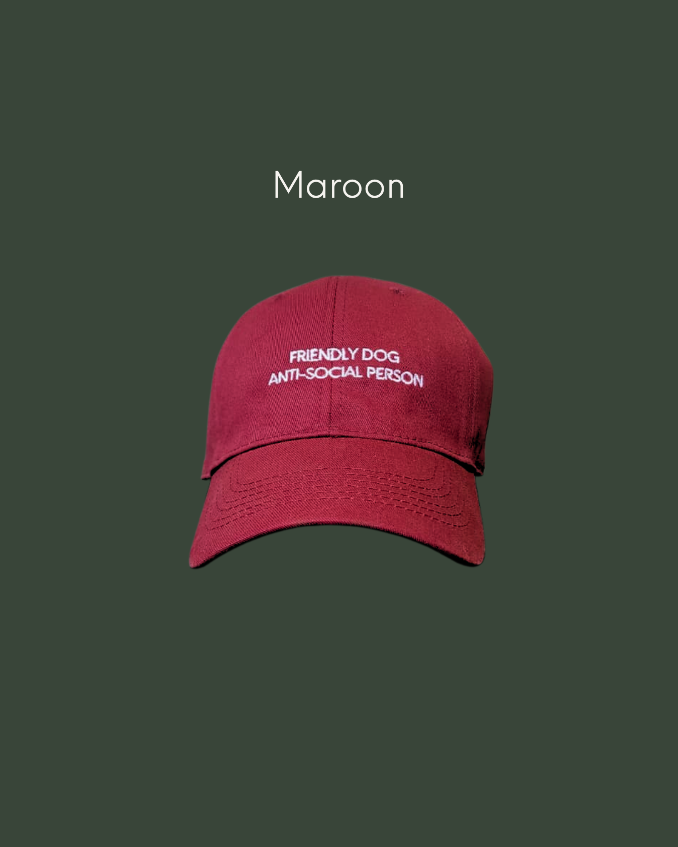 - Embroidered letters "Friendly Dog, Anti-Social Person"
